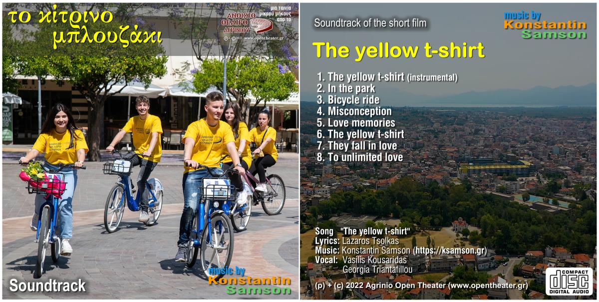 Το μουσικό έργο Το Κίτρινο Μπλουζάκι περιλαμβάνει τα οκτώ θέματα που αποτελούν το Soundtrack της ομότιτλης ταινίας μικρού μήκους σε παραγωγή του Ανοικτού Θεάτρου Αγρινίου.