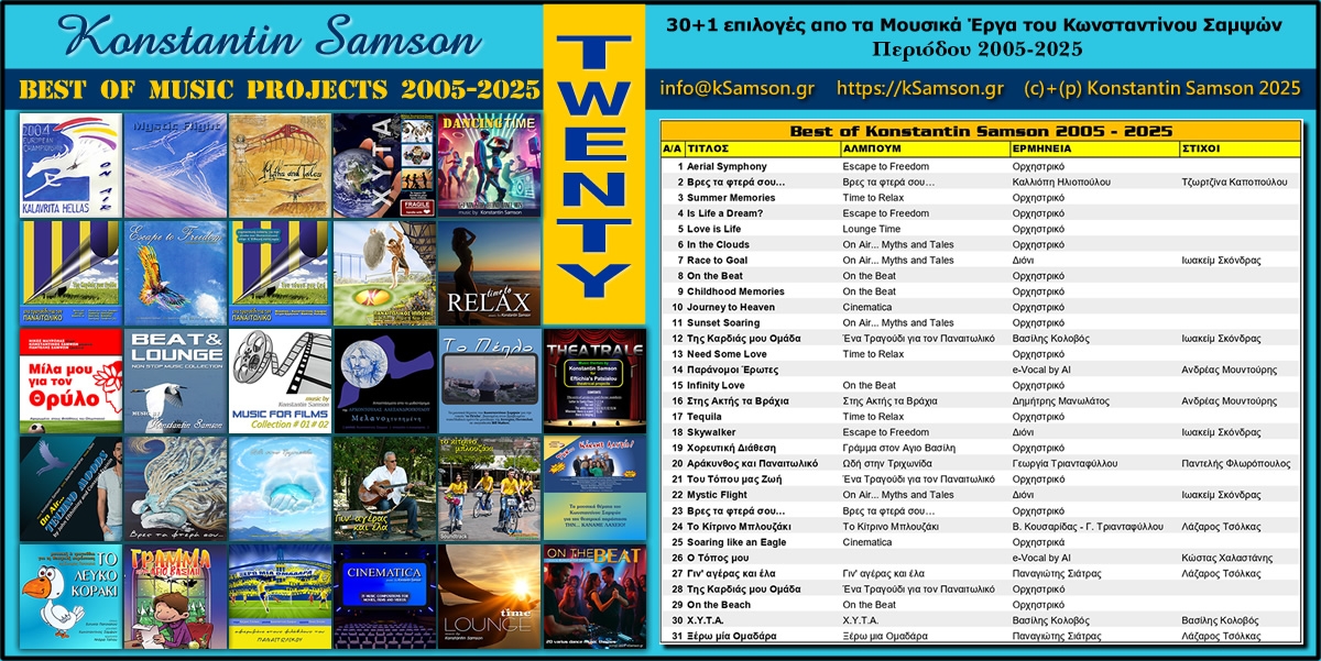 | Best of Konstantin Samson Music 2005 - 2025 (Περιεχόμενα) | ||||